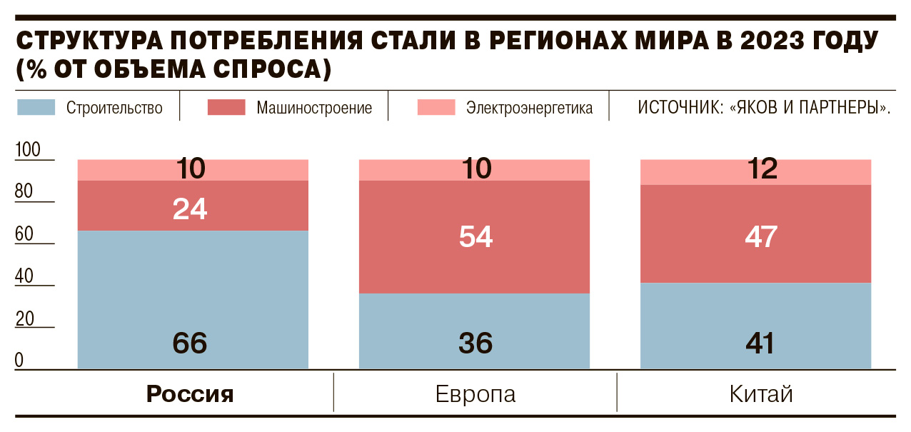 Значительный вклад в увеличение спроса внесут инфраструктурные проекты железнодорожной отрасли (0,5 млн тонн), развитие трубной промышленности (0,3-0,5 млн тонн) и автомобилестроение (0,2 млн тонн). Строительный сектор, традиционно являвшийся главным потребителем стали, имеет потенциал восстановления до уровня 2023 года за счет повышения металлоемкости зданий и освоения новых регионов.